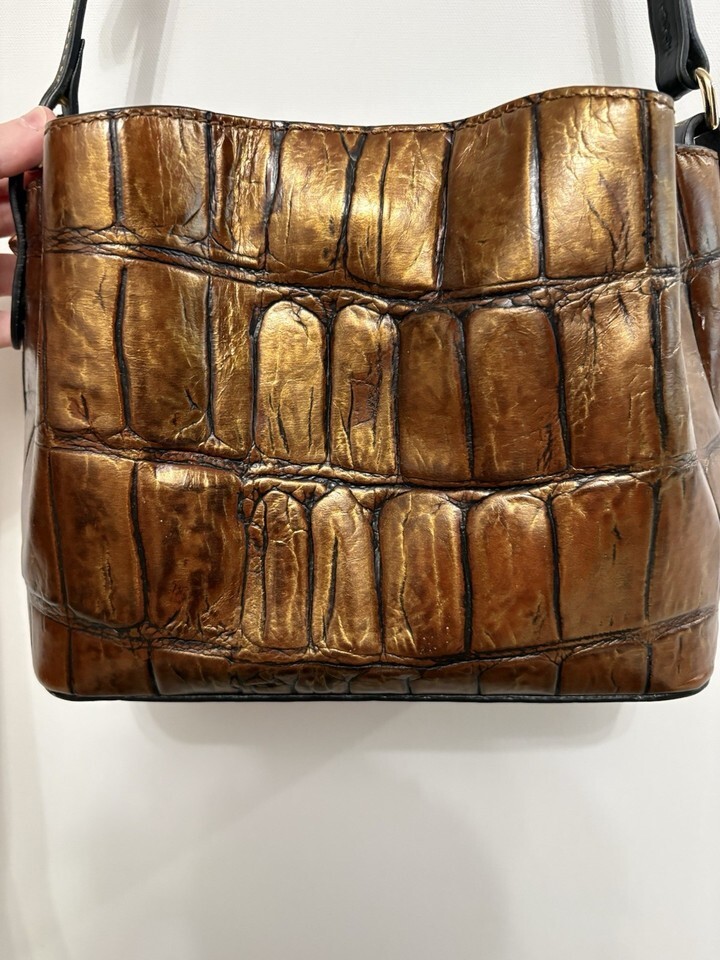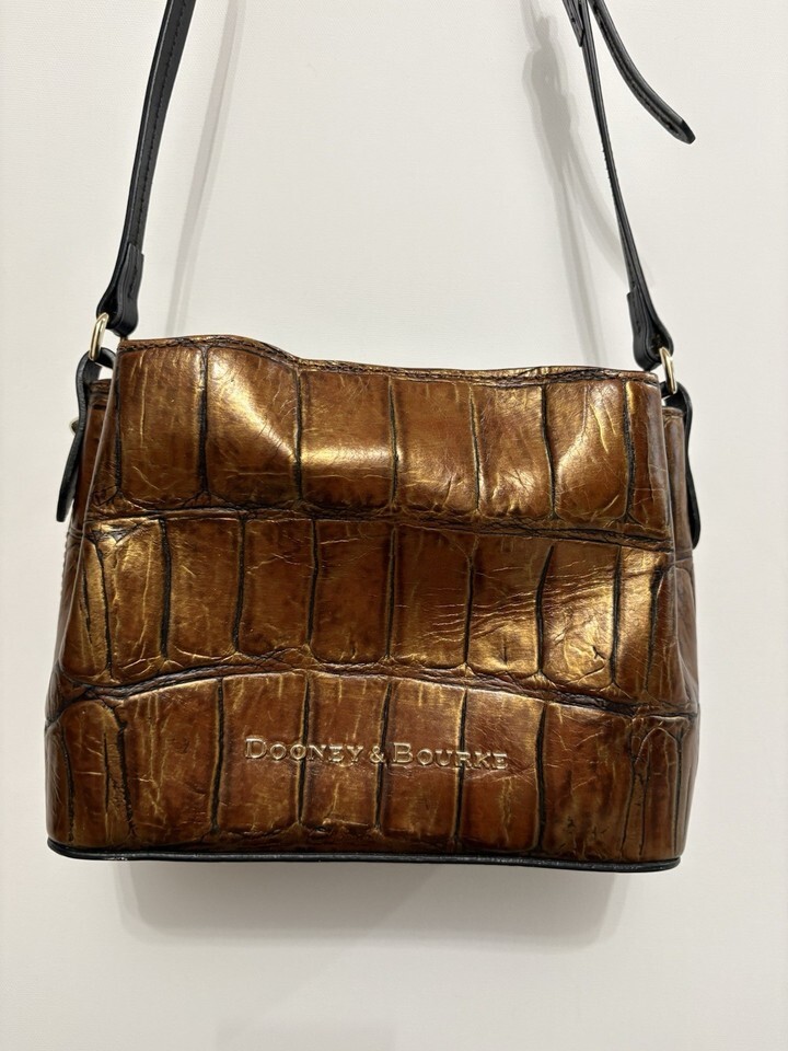 DOONEY & BOURKE Mini Barlow Croco Design Shoulder Bag Purse Leather Bronzy Brown