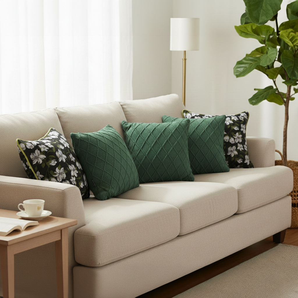 Textured Decorative Design: Diamond knit patterns paired with floral motifs add tactile comfort, depth, and charm.
