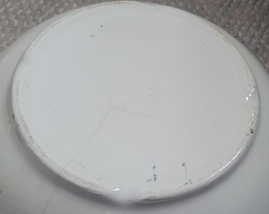 This bowl is in acceptable used vintage condition. As seen in the photos, there is a crack. There is also wear at the rim as seen in the photos. It measures approximately 10 inches round at the top. 5.5 inches deep. There are some other imperfections. Please look at the photos.