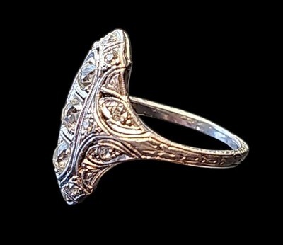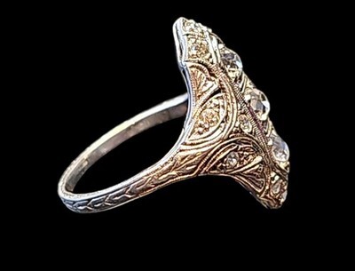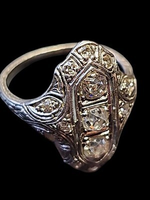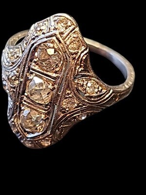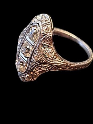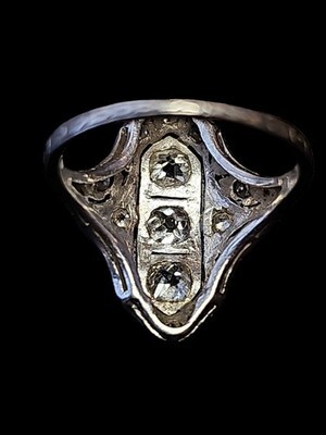 Antique Art Deco Platinum 1.20 TCW Dimond Shield Cocktail Ring 4.84g TW Sz 6.5