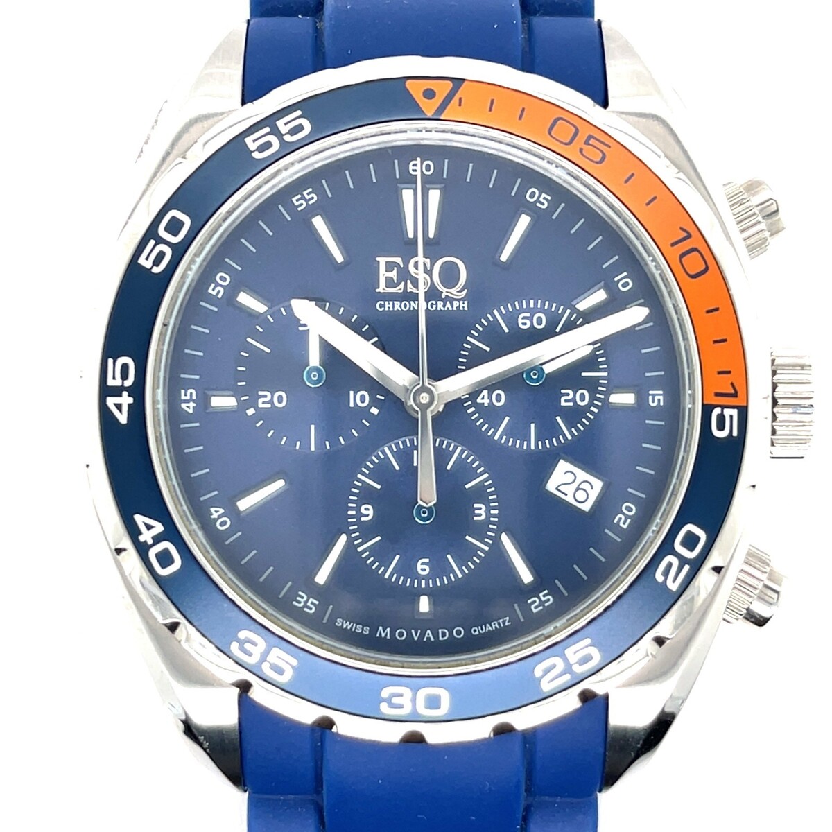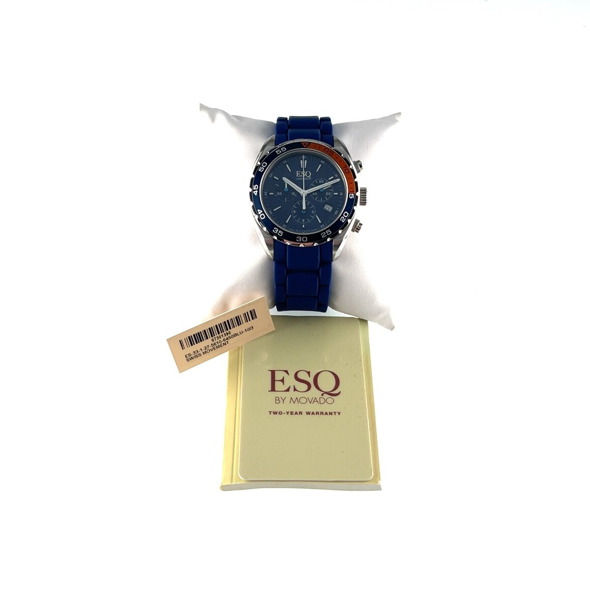 ESQ Movado Chronograph Swiss Quartz Men?s Watch w/ Blue Rubber Strap