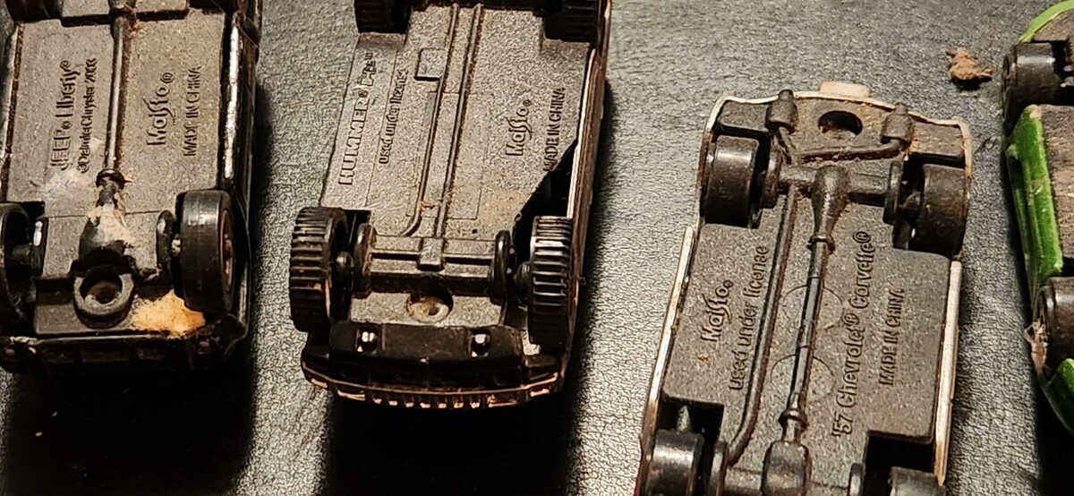 This lot of toy cars is well played with. Some wear issues. All are Maisto Brand