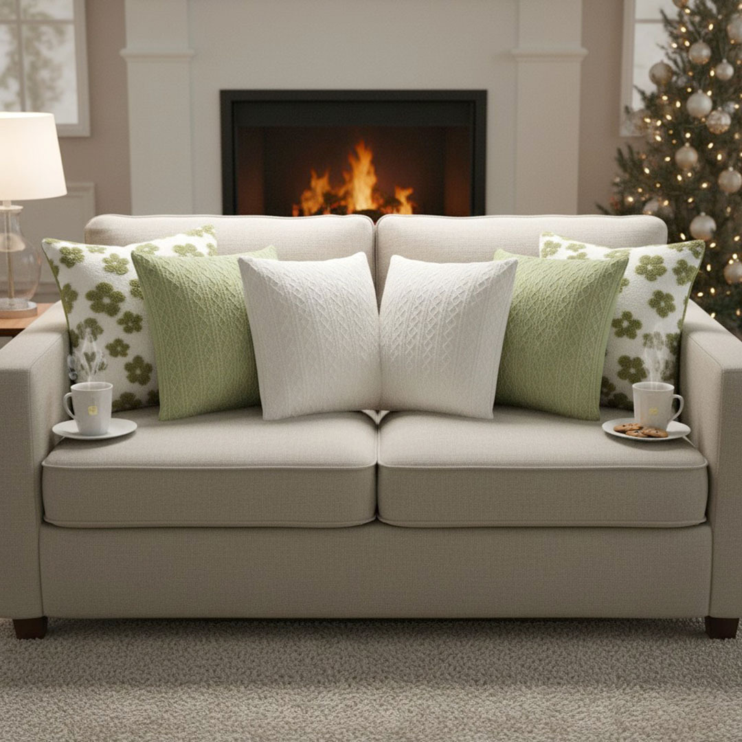 Textured Decorative Design: Cable knit textures and floral motifs provide tactile comfort, depth, and visual appeal.