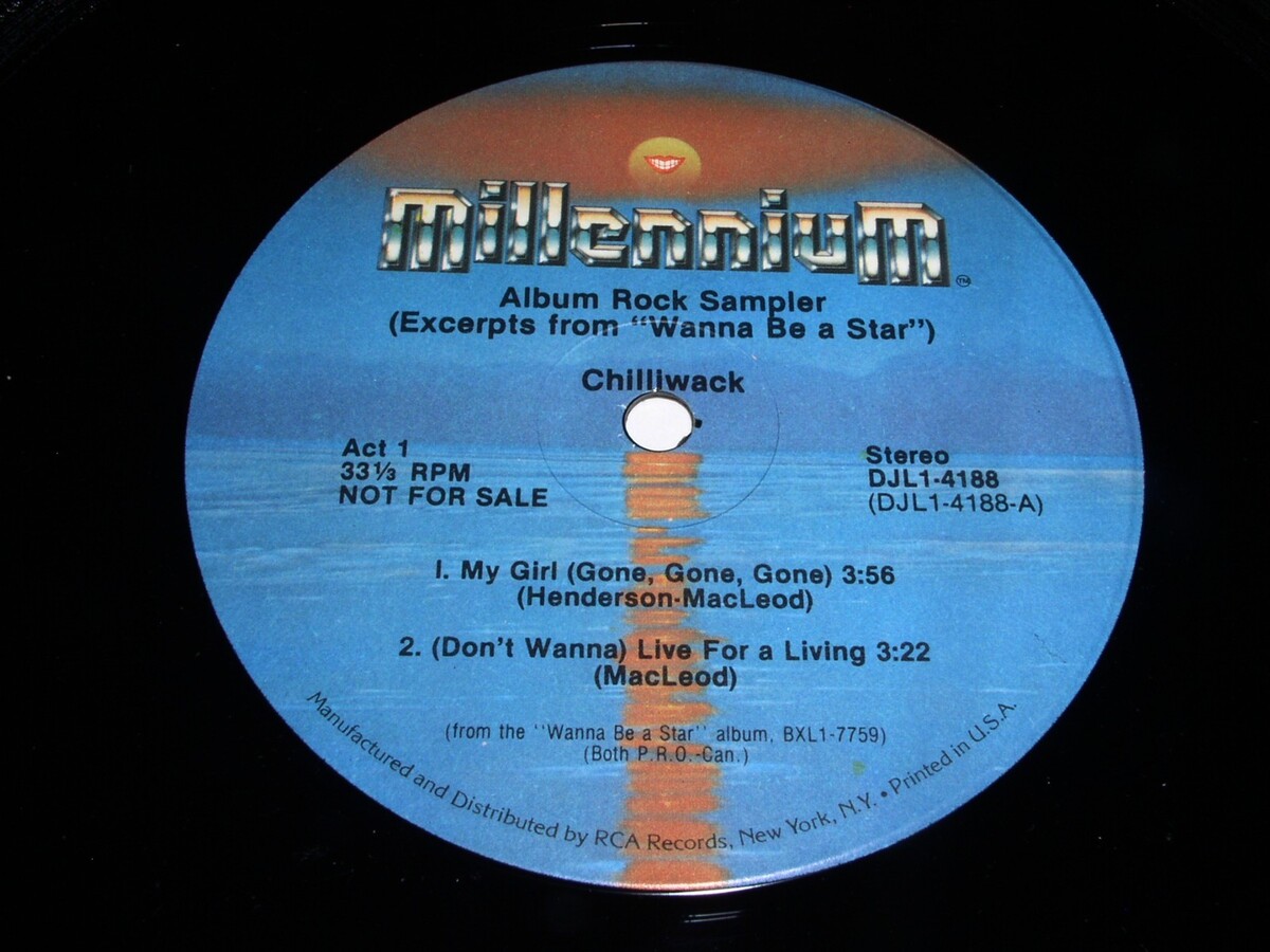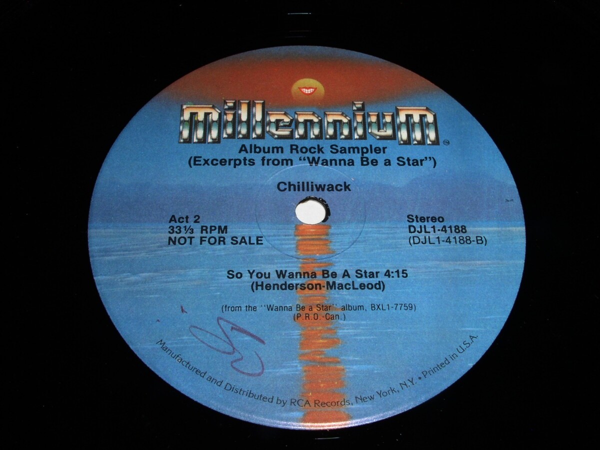 This is a vintage, promotional phonograph record album by Chilliwack, entitled, "Chilliwack Album Rock Sampler (excerpts from "Wanna Be A Star")". Record label Milennium DJL1 4188.