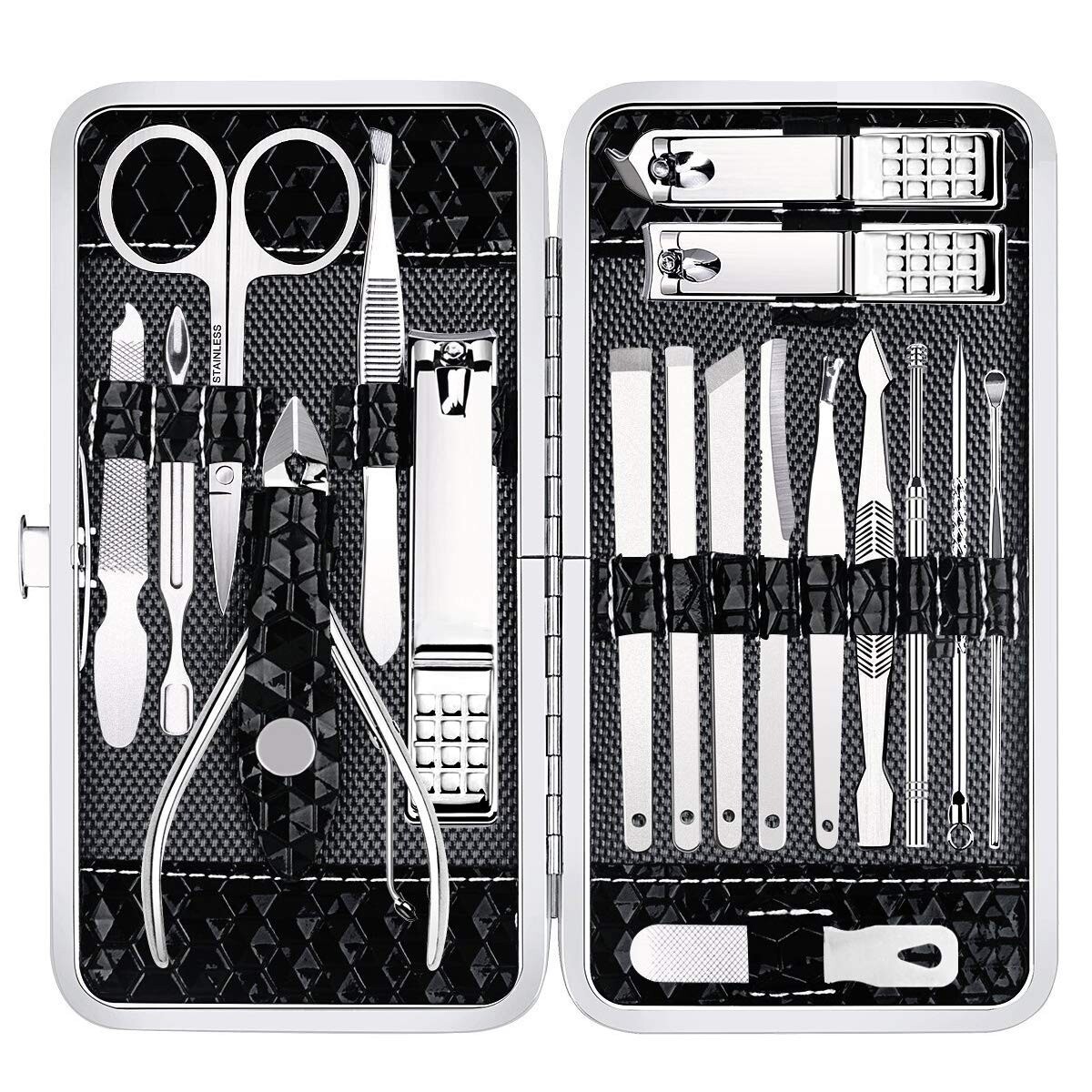 Comprehensive Tool Set: Includes 18 expertly crafted tools to meet all your grooming needs, from manicure to pedicure and facial care.