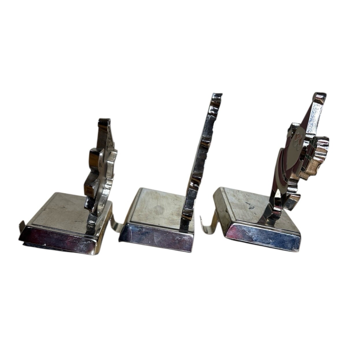 Vintage Three Metal Christmas Stocking Hangers Santa Penguin Xmas Tree