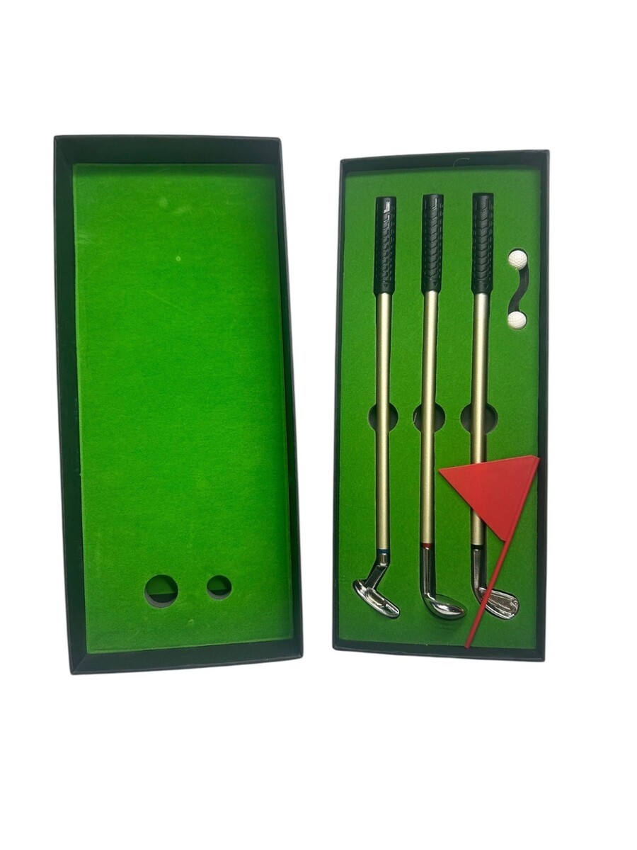 Desktop Golf Club Pen Set Mini Putting Green Novelty Office Gift Never Used