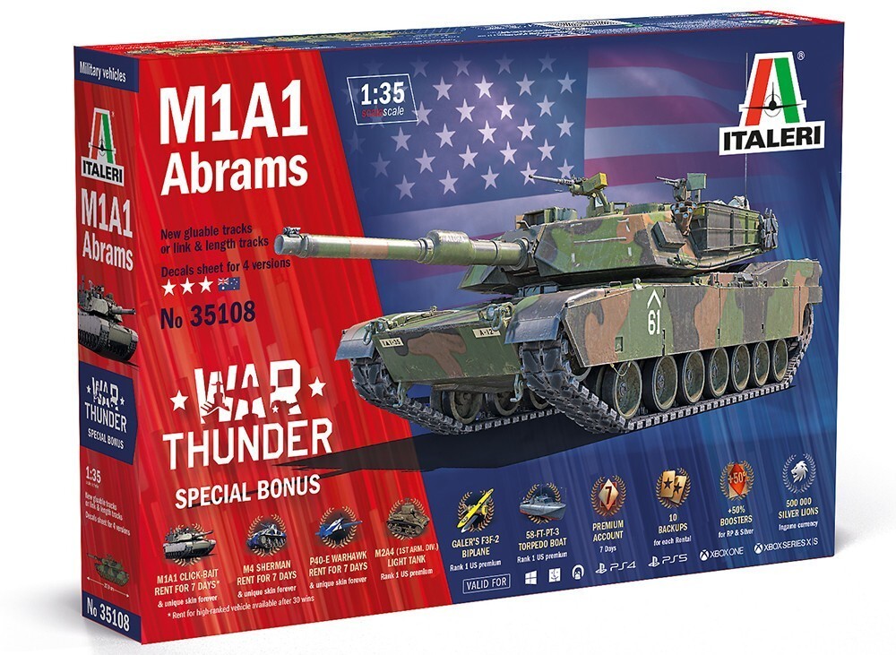 M1A1 Abrams "War Thunder" Special Bonus 1/35 Scale Model Tank Kit - Italeri