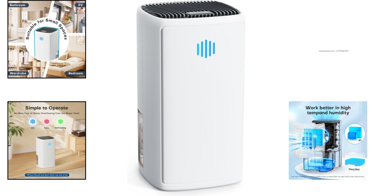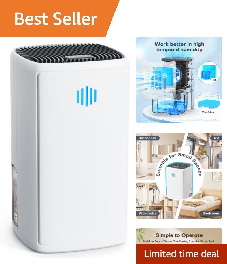38oz Whisper-Quiet Dehumidifier with Auto Shut-Off - Ideal for Bathrooms & RVs