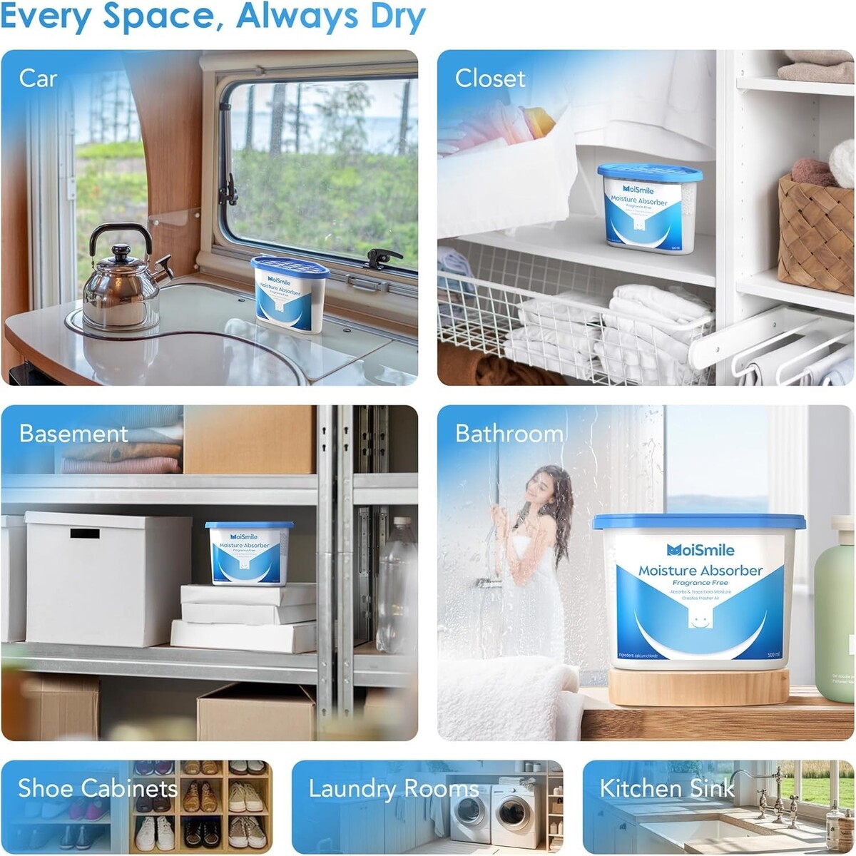 100% Leak-Proof Guarantee: Equipped with three layers of waterproof paper, ensuring moisture stays locked inside, making it an ideal dehumidifier for vehicles, closets, and bathrooms.