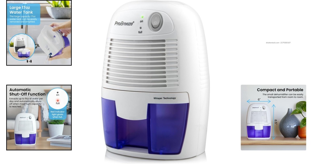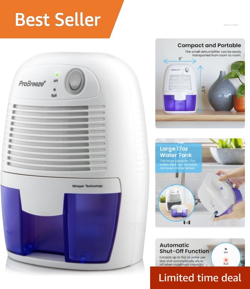 Compact Portable Dehumidifier for 215sqft Rooms with 16oz Tank - Whisper Quiet