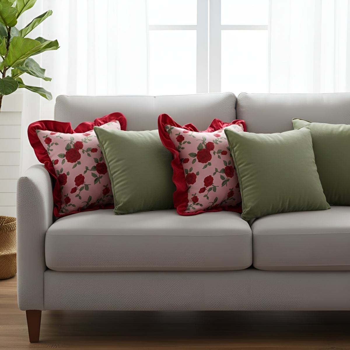 Textured Decorative Design: Velvet fabric and ruffle detailing add depth, softness, and tactile charm.