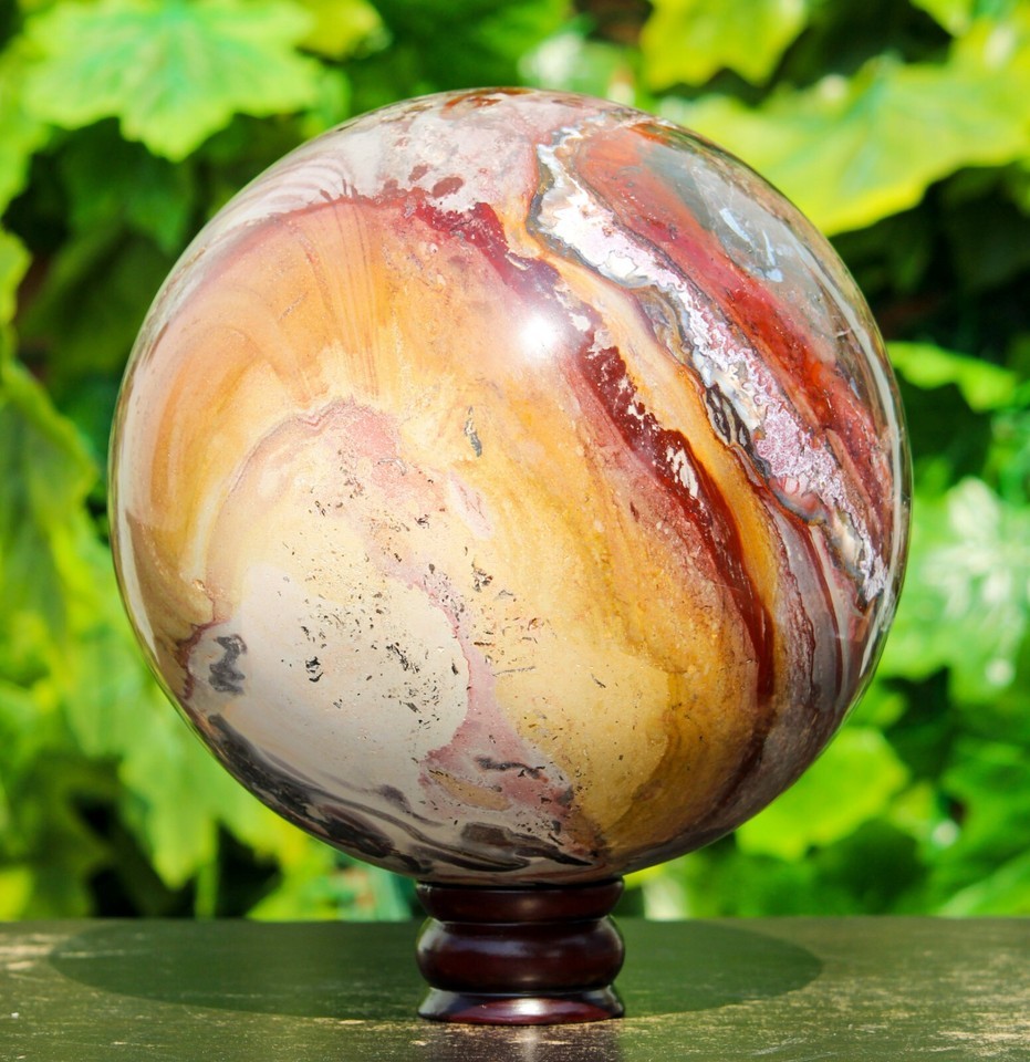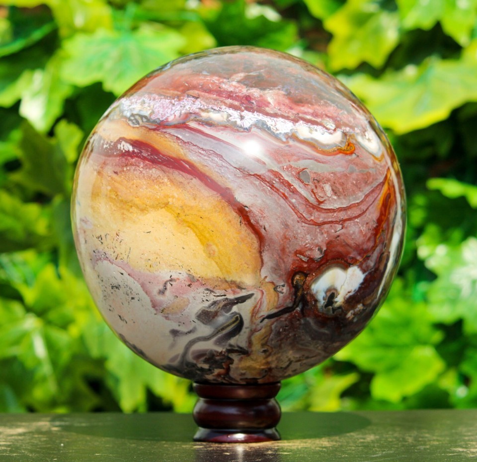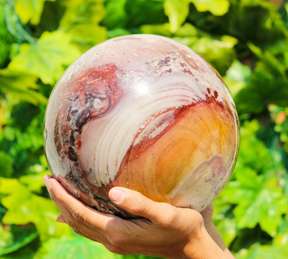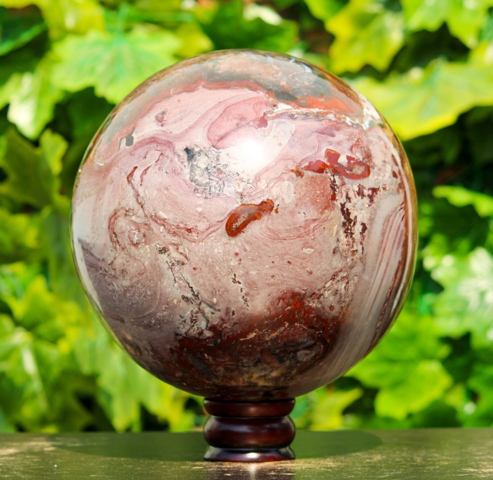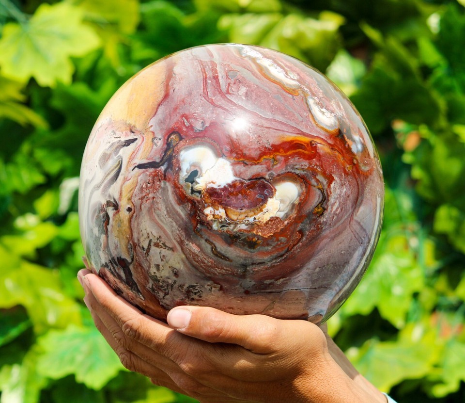 Polished 205mm Red Ocean Jasper Crystal Quartz Sphere Healing Energy Gemstone Polished Ball Perfect for Healing Process, Decoration, Exibition, Fengshui, Altar and Home/Office Garden Collectible, Energy Cleansing Crystal Sphere.
