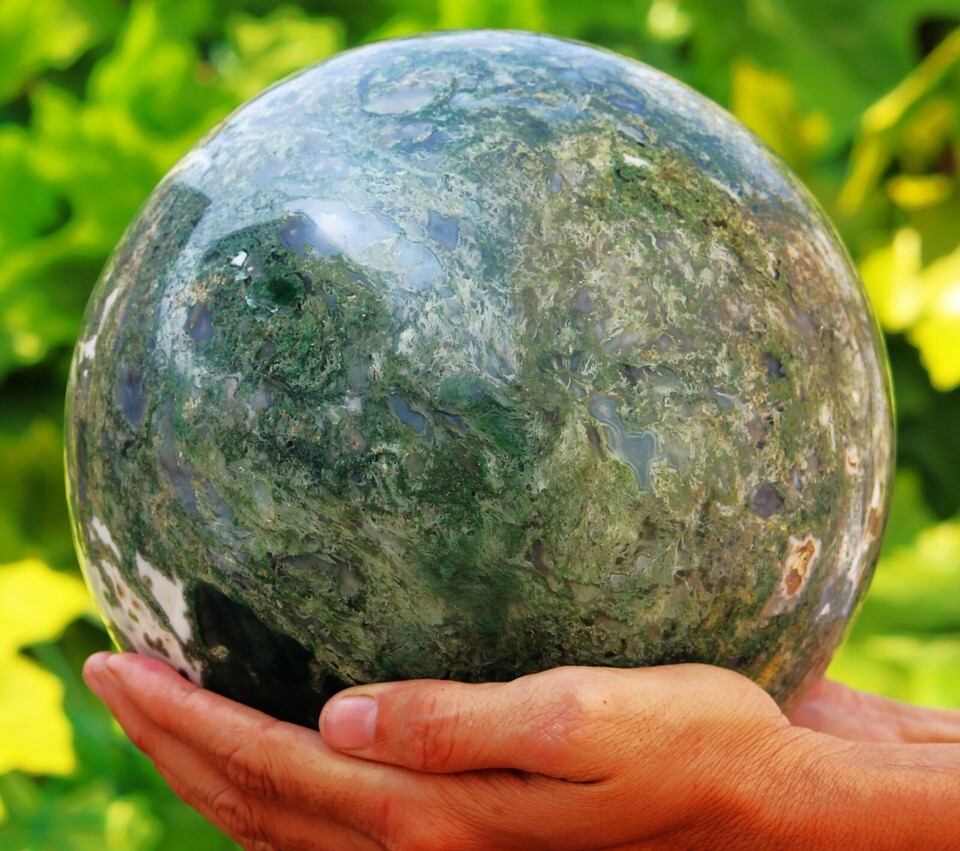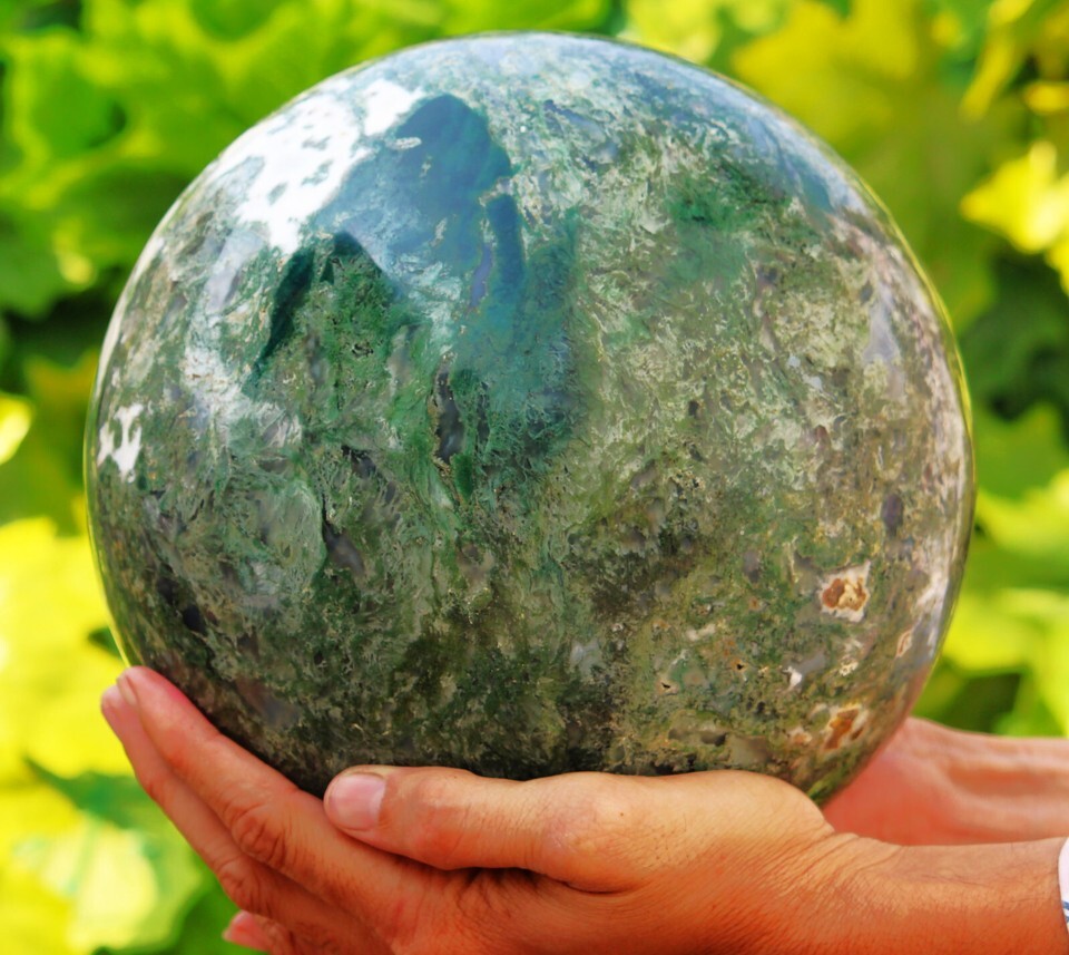 XL 20CM Green Moss Agate Crystal Healing Metaphysical Stone Display Sphere