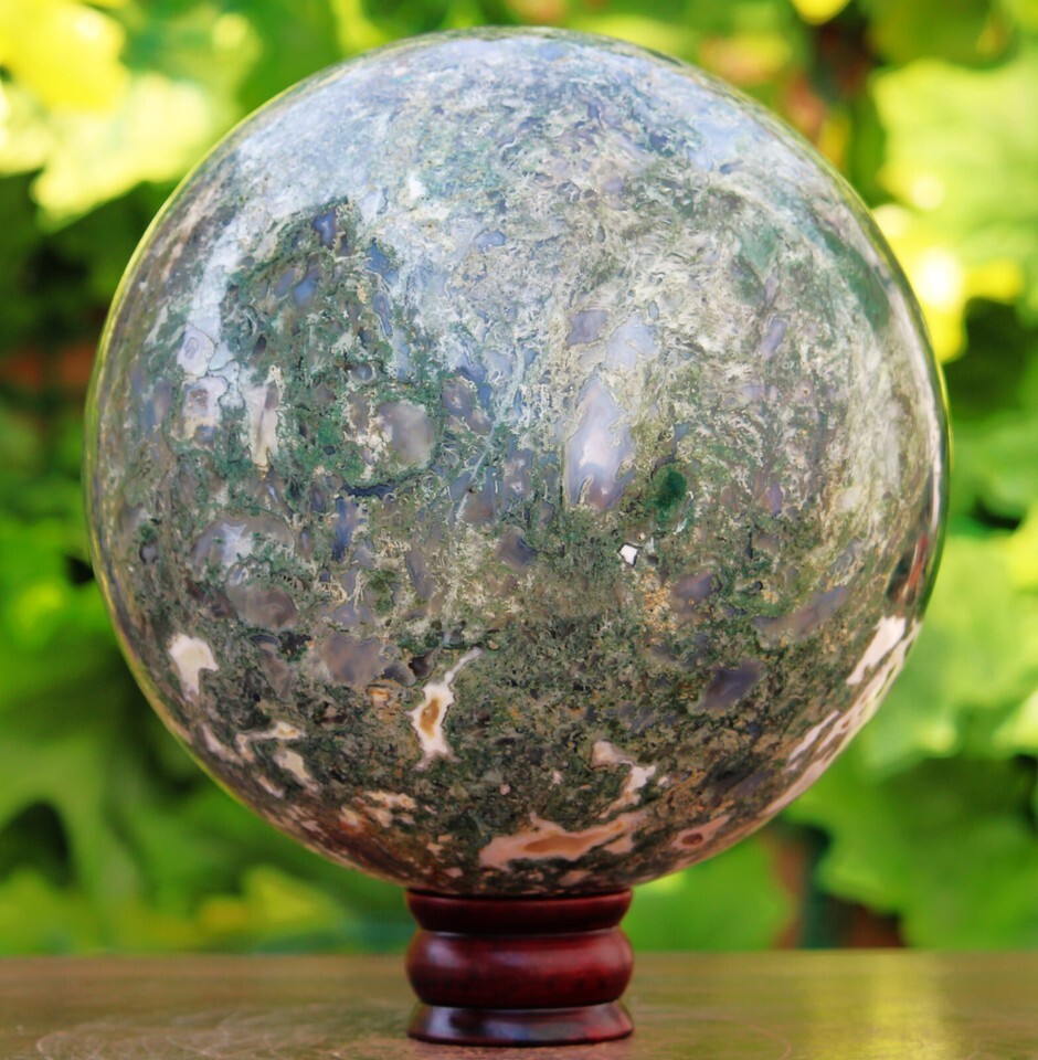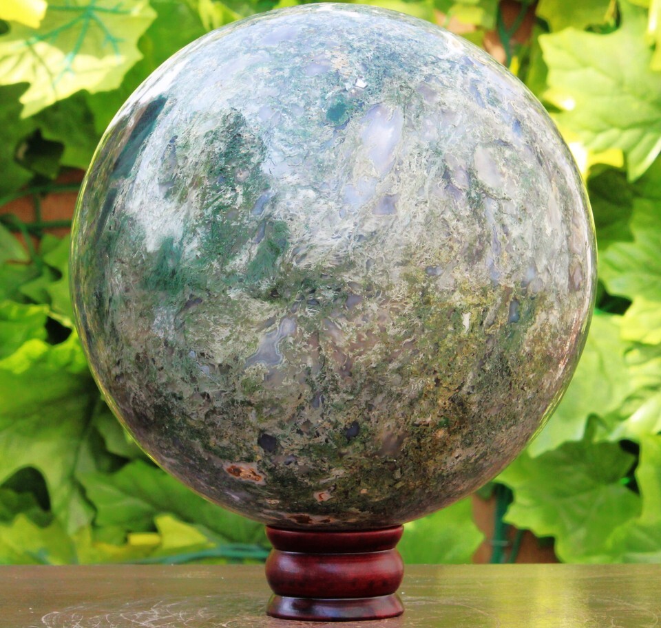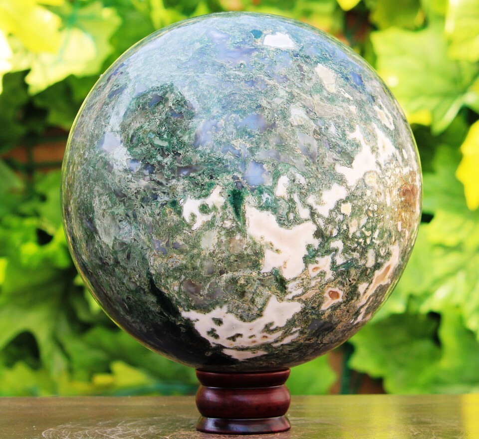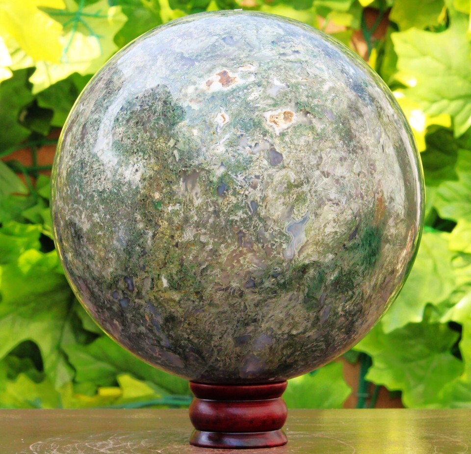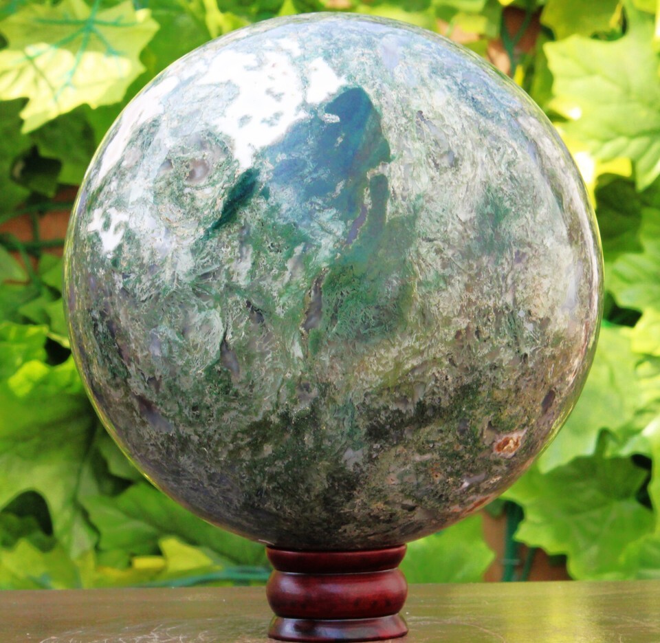 Beautiful Large 200mm Natural Polished Green Moss Agate Crystal Quartz Healing Stone Sphere Specimen For Healing, Fengshui, Reiki, Aura, Meditation, Metaphysical, Decoration and Minerals Specimen.
