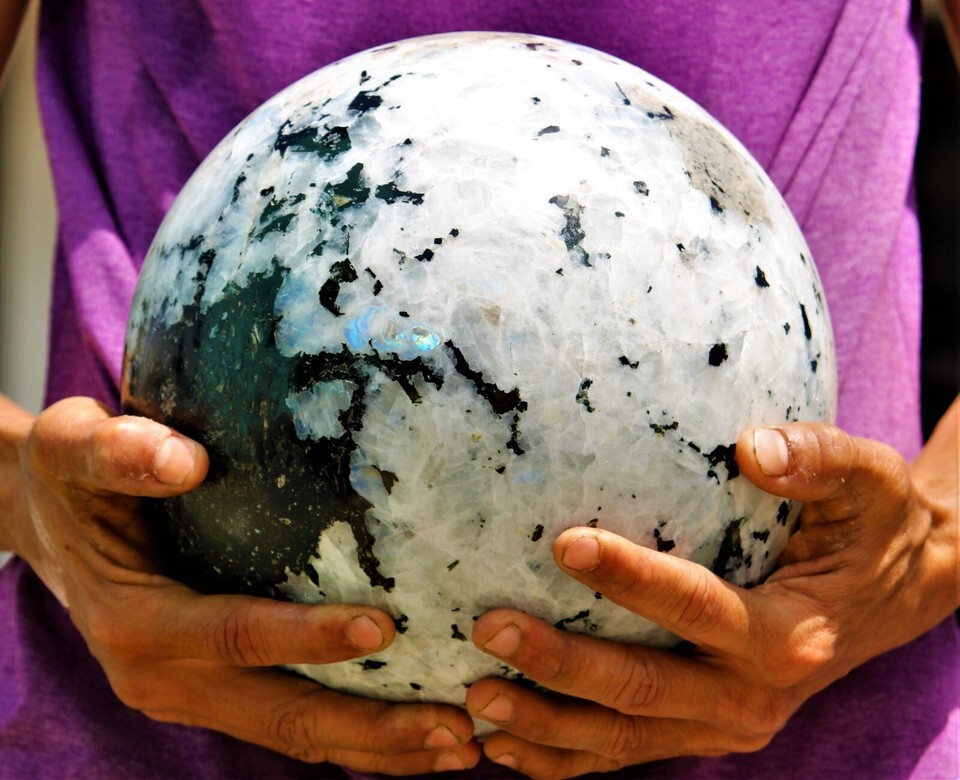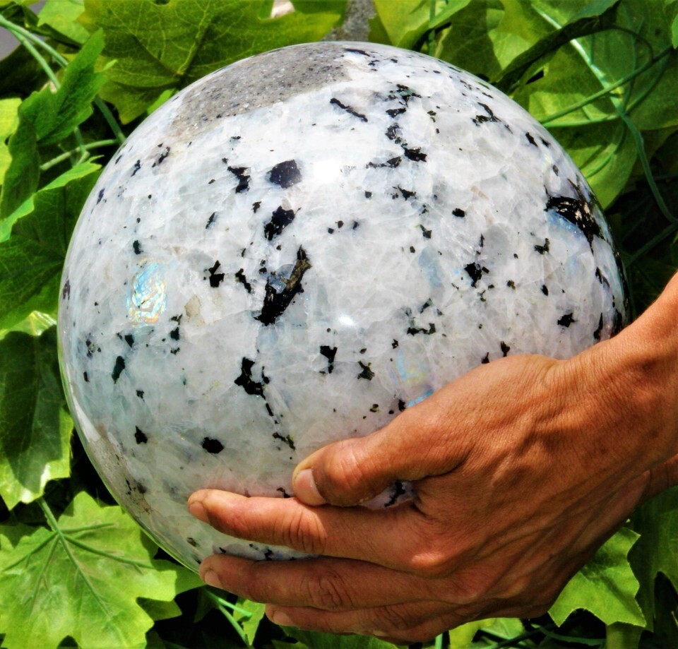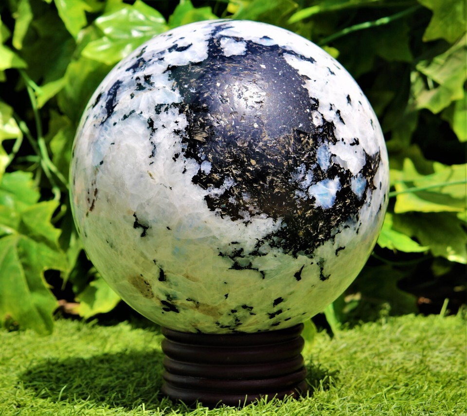 Beautiful Large 215mm Natural Polished White and Black Rainbow Moonstone Crystal Healing Stone Sphere Specimen For Healing, Fengshui, Reiki, Aura, Meditation, Metaphysical, Decoration and Minerals Specimen.