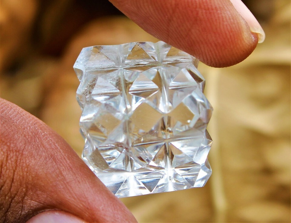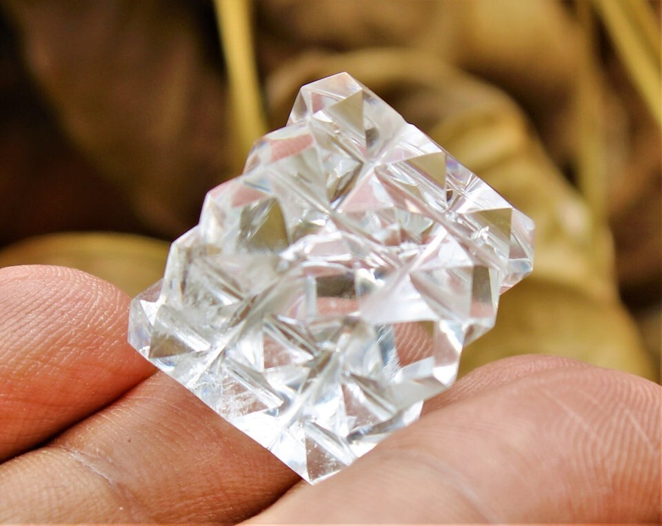 Offer/buy: 1 (One), Item/Style: Stone Cube (54 Mini Pyramids in Cube), Condition: New, Color: Clear, Size/Weight: 20mm / 10-12 gm, Stone Name: Clear Quartz Crystal, Origin: Brazil.