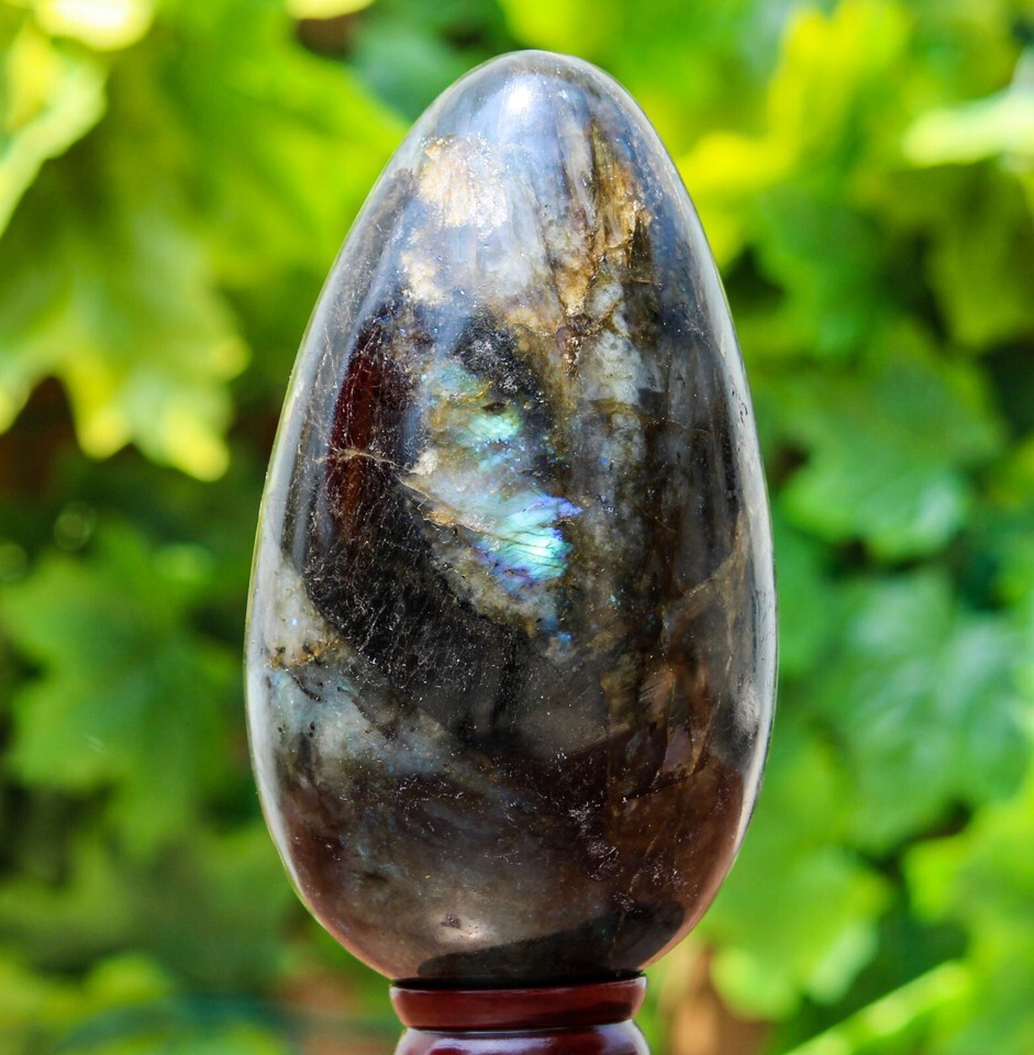 Large Size 195mm Flashy Green Labradorite Crystal Quartz Egg Healing Energy Gemstone Polished Perfect for Healing Process, Decoration, Exibition, Fengshui, Altar and Home/Office Garden Collectible, Energy Cleansing Crystal