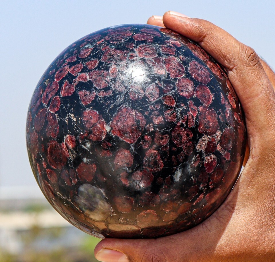 13cm Red Black Garnet Astrophylite Ball Crystal Healing Reiki Stone Sphere Globe