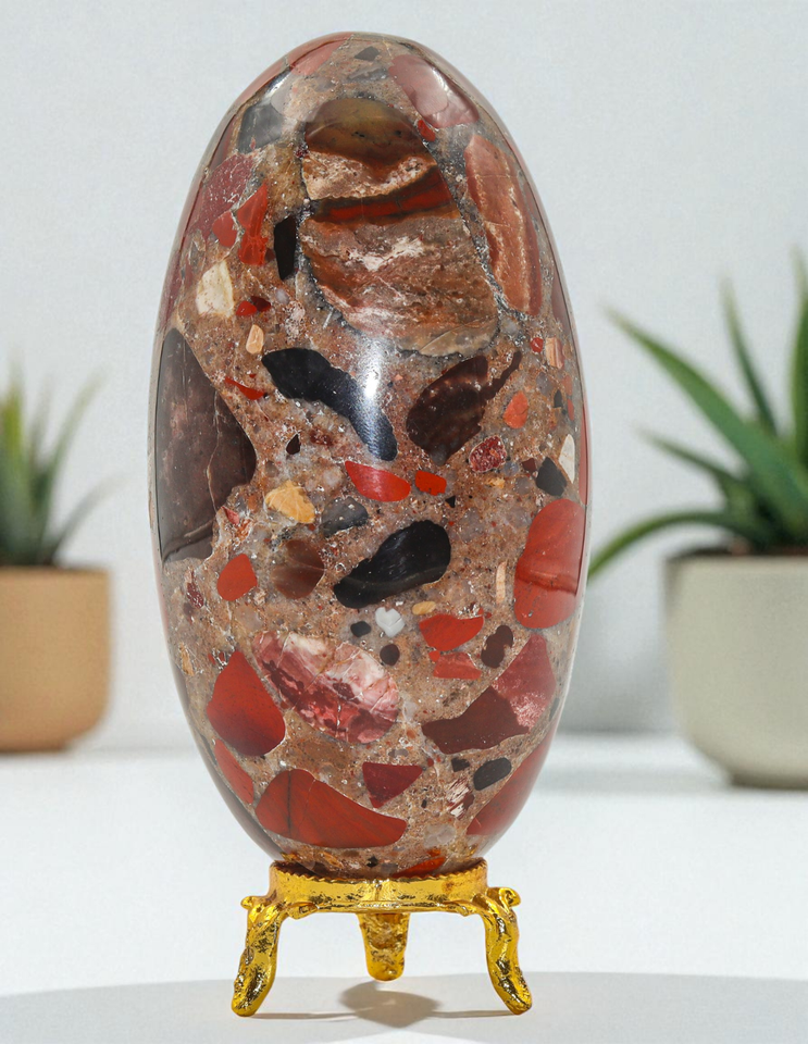 Superb 105MM Polished Red Conglomerates Jasper Crystal Healing Stone Lingam Specimen For Healing, Fengshui, Reiki, Aura, Meditation, Metaphysical, Decoration and Minerals Specimen.