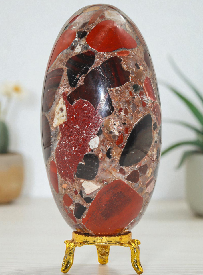 Red CONGLOMERATES JASPERCrystal Stone Healing Gemstone Decor Lingam Gift 105mm