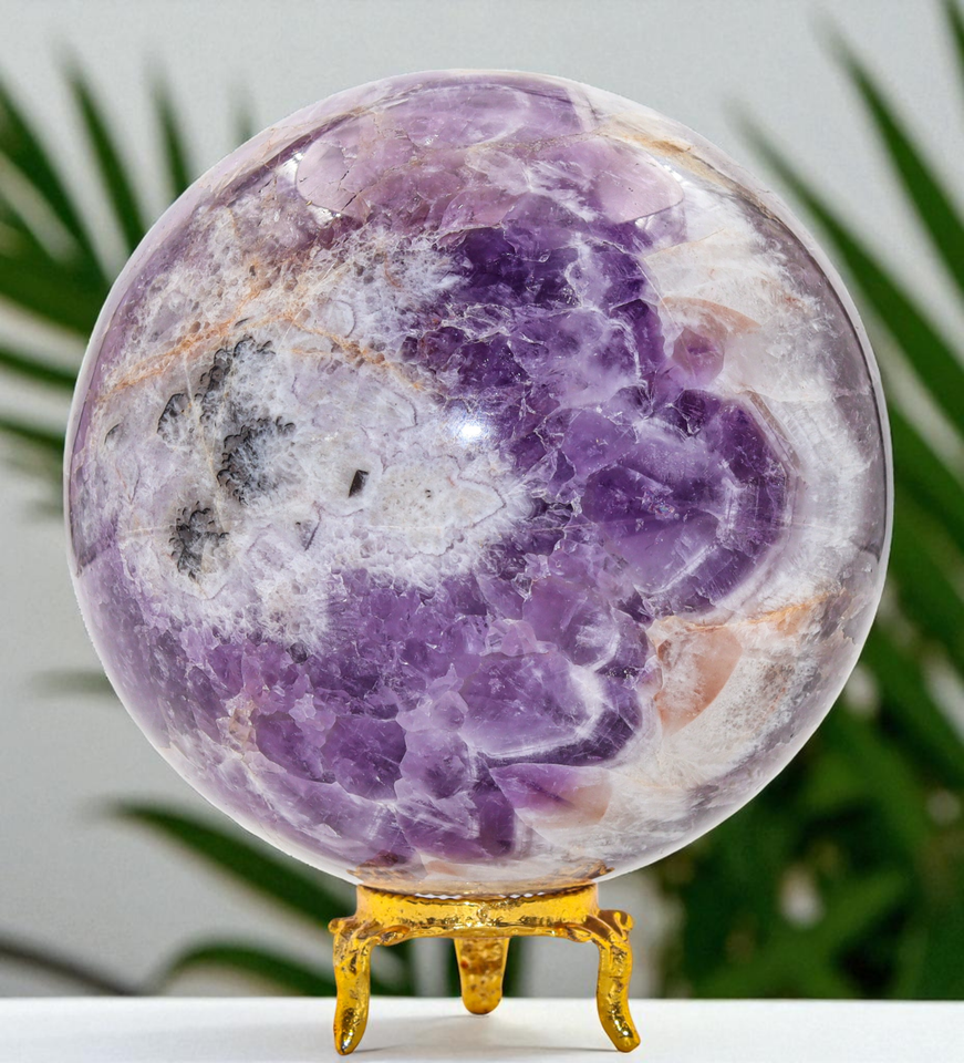 At 90mm (3.6" inches) in diameter, this crystal is both an energetic powerhouse and an elegant centerpiece.