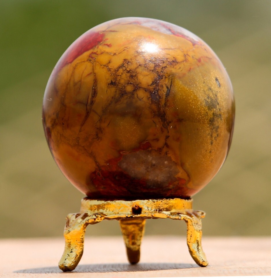 50mm/160g Superb Quality Carved Small Size Red Yellow King Cobra Jasper Crystal Quartz Healing Gemstone Stone Sphere ball with stand.
