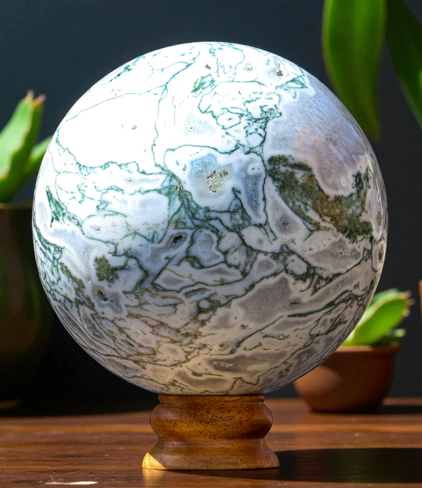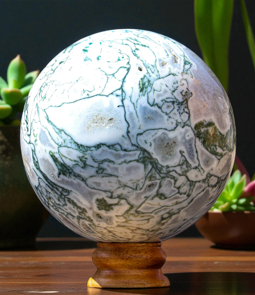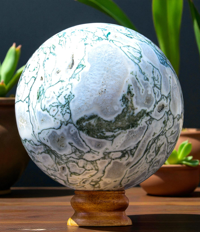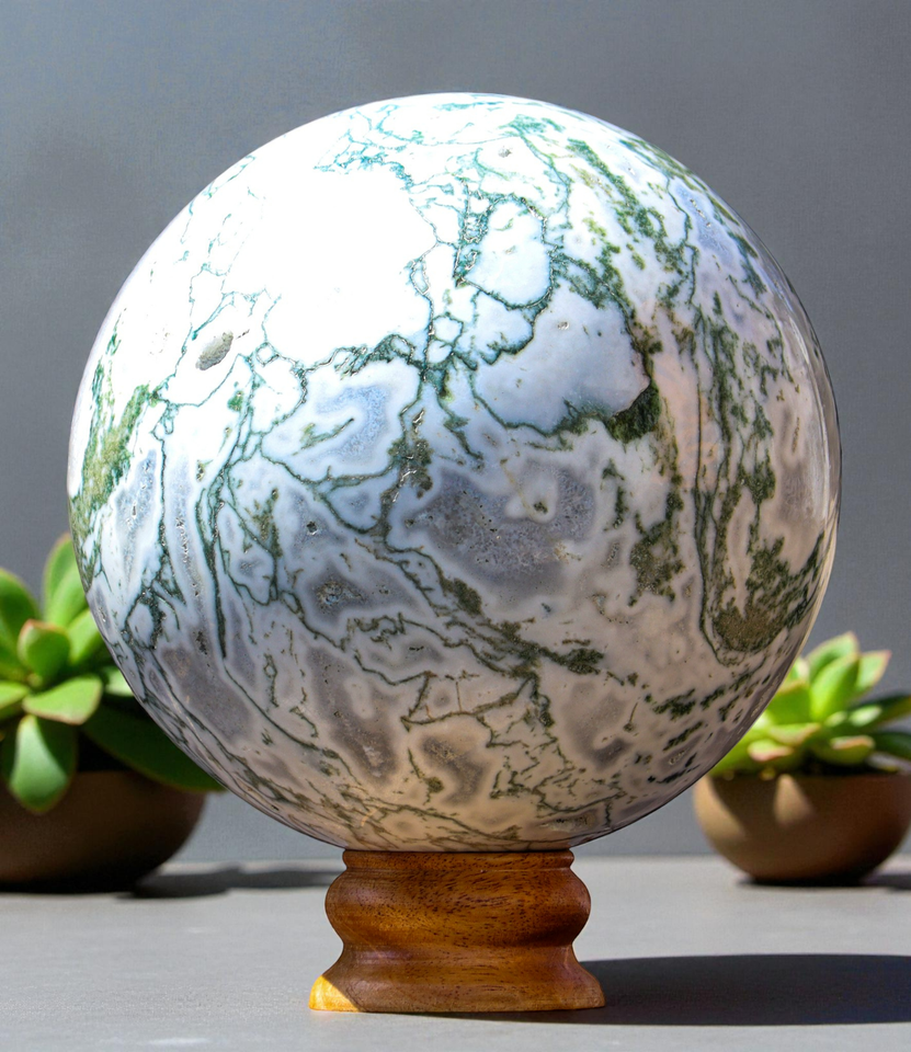 Superb Unique XL 160MM Polished Green Tree Agate Crystal Healing Stone Sphere Specimen For Healing, Fengshui, Reiki, Aura, Meditation, Metaphysical, Decoration and Minerals Specimen.