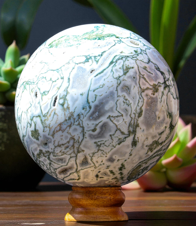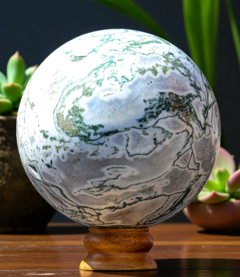 160mm XL Green TREE AGATE Sphere Crystal Healing Reiki Stone Decor Fengshui Gift
