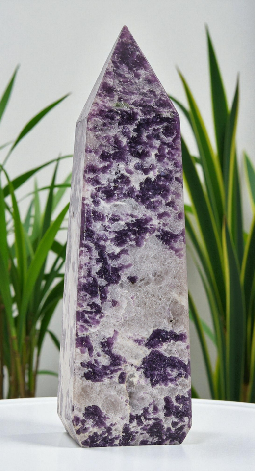 A lepidolite obelisk is believed to offer benefits related to emotional and spiritual well-being, such as reducing stress and anxiety, promoting calm and peace, and aiding in transitions. The obelisk shape itself is thought to stabilize and raise energy, while the lepidolite's properties provide a soothing influence for emotional balance and mindfulness.