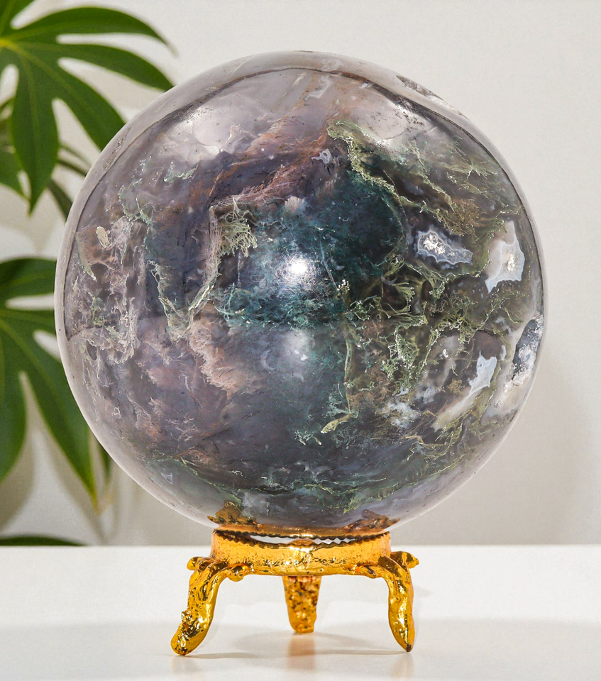 Polished Green Moss Agate Crystal Healing Decor Chakra Mid Large Stone Sphere 80mm for Fengshui, Reiki, Aura, Healing Practices, Collector's Gift, Meditation, Metaphysical, Birthday Gift.