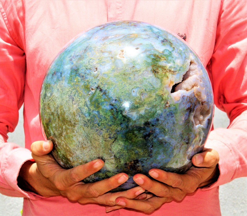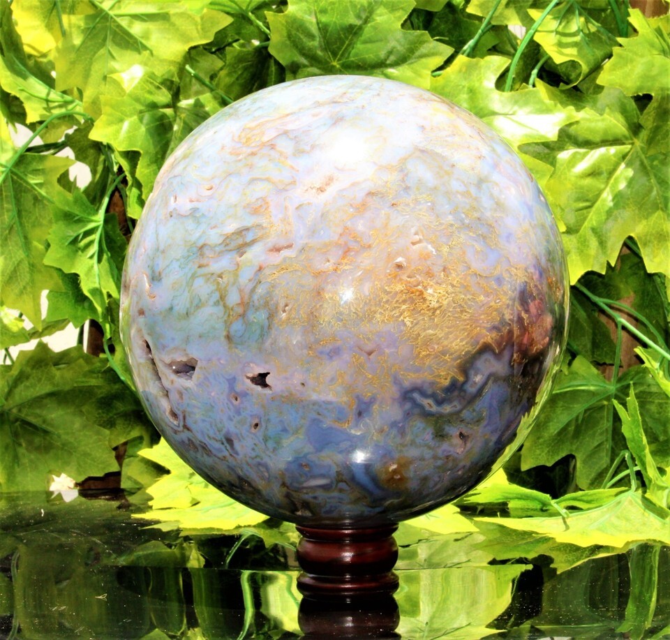 XL 9.8" Green Moss Agate Crystal Healing Metaphysical Stone Collectible Sphere