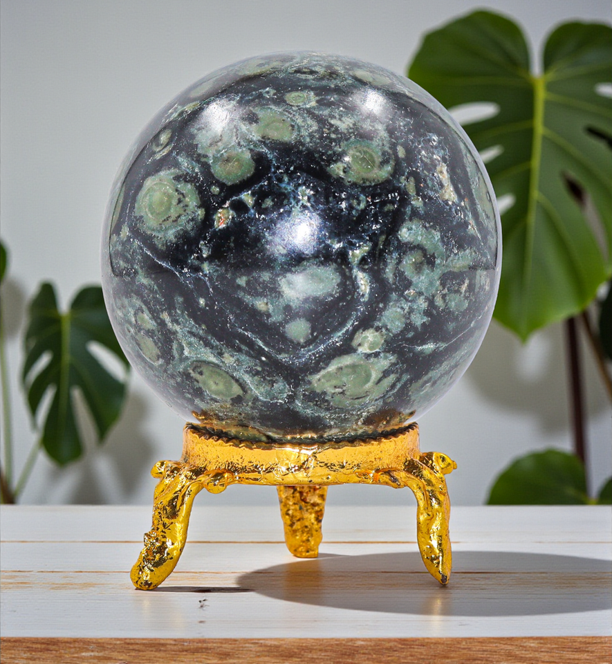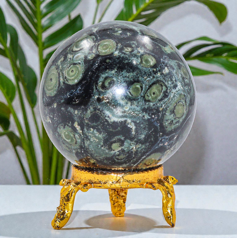 Polished Green Kambaba Jasper Crystal Healing Decor Chakra Stone Sphere 50mm for Fengshui, Reiki, Aura, Healing Practices, Collector's Gift, Meditation, Metaphysical, Birthday Gift.