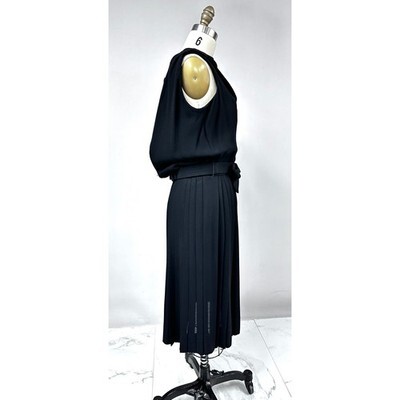 Excellent vintage condition. Clean and dry-cleaned. The only flaw is that the leather backing on the belt is stiffening with age; otherwise flawless and ready to wear.