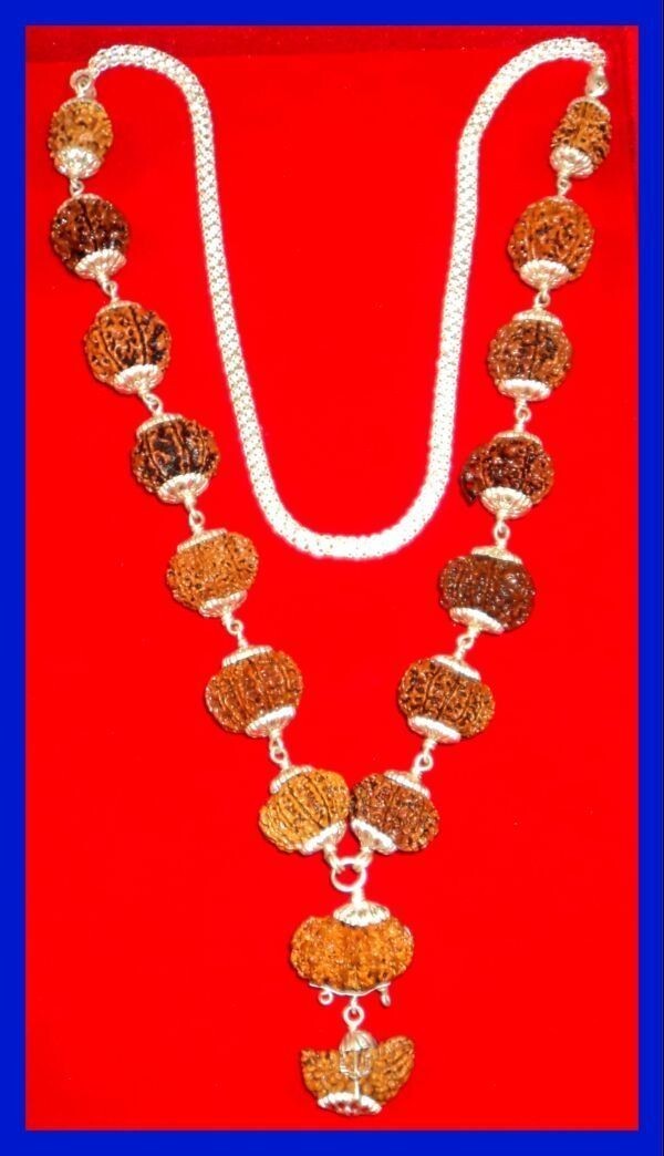 Design : All the Rudraksha are Strung In silver wire having knot style , With Silver Cap on each beads and finally attach With Strong silver chain .