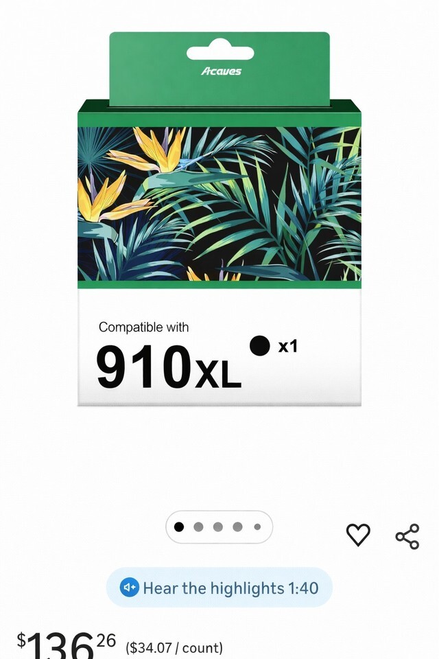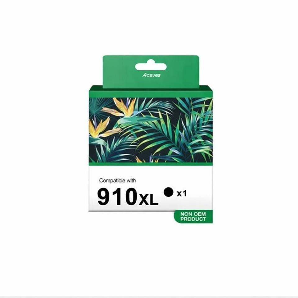 The NEW Acaves 910XL High Yield Generic Black Ink Cartridge is compatible with HP printers, specifically the HP 65 model. This genuine/original ink cartridge is designed for inkjet printing and comes in a sleek black color. Made in China, this cartridge has a long expiration date of 6/28/2028, ensuring its quality and usability for a significant period of time. Ideal for those looking for a reliable and efficient printing solution, this ink cartridge offers high-quality performance with the convenience of a generic brand.