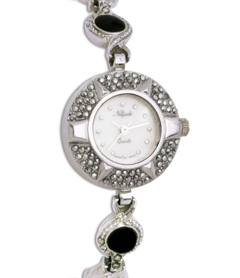 VINTAGE ELEGANT NETSUKE MARCASITE TOURMALINE STONES STAINLESS STEEL WOMEN WATCH