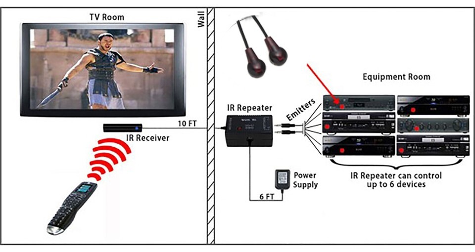 ? CONTROL up to 6 home theater devices kept behind a closet doors or in a closed cabinet with IR Infrared Remote Control Extender Repeater System. This product allows you to control A/V equipment with your existing IR remote controller.
