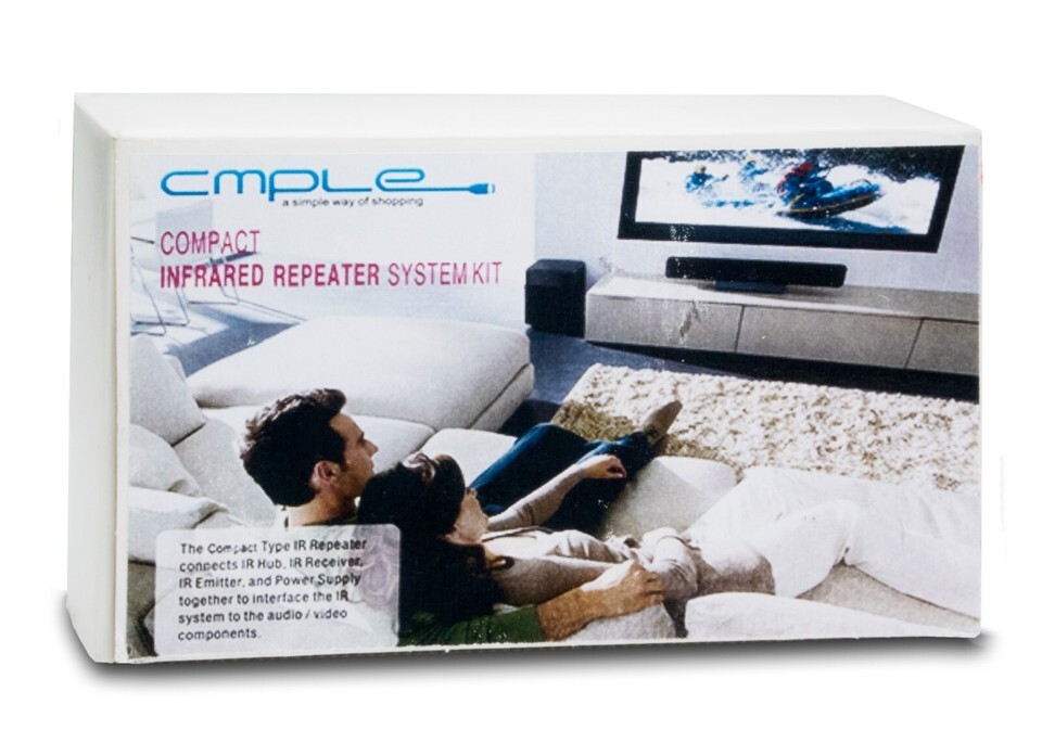 IR System Overview: Do you wish you could hide your entertainment system in a less obtrusive view, share a Blu-ray player between two rooms or perhaps control your stereo's volume from anywhere in your house? The Cmple Hidden IR Repeater System allows you to use an existing infrared (IR) remote control to operate up to six (6) audio/video (A/V) components located behind cabinet doors, in the rear of a room, in an entertainment cabinet, equipment closet or in a different room. The built-in IR distribution technology gives you the ability to conceal, yet still control bulky electronic equipment such as a cable box, satellite TV receiver, stereo receiver, amplifier, CD player, DVD player, Blu-ray player or virtually any component controlled by an IR signal.