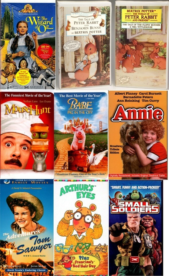 VHS WIZARD OF OZ PETER RABBIT MOUSE HUNT BABE ANNIE TOM SAWYER
