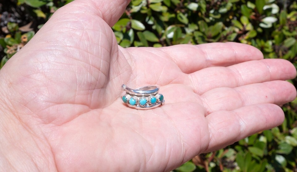 VINTAGE NATIVE AMERICAN ZUNI TURQUOISE SNAKE EYES RING STERLING SILVER SZ-4.5