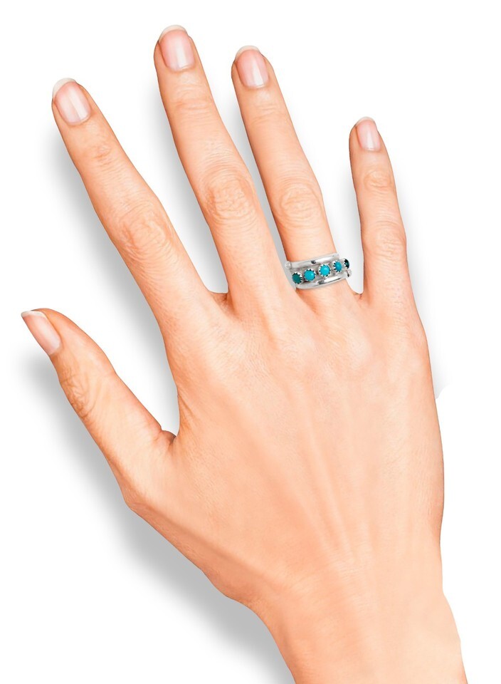(One) 5 Turquoise Gemstones, 925 Stearling Silver Setting Size 4.5