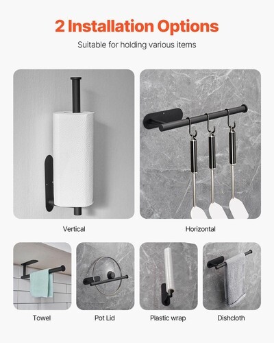 Multiple Uses: More than just a paper towel holder! Install it horizontally or vertically to hang towels, plastic wrap, pot lids, dishcloth, or kitchen utensils. Maximize wall space and keep your kitchen organized with ease!