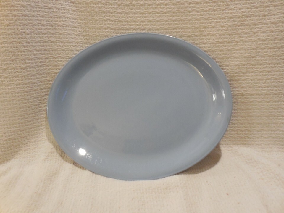 DESCRIPTION: Homer Laughlin china Skytone blue oval platter (discontinued). It is 13 5/8 x 10 1/2" and is undecorated. Pictures are considered part of description.