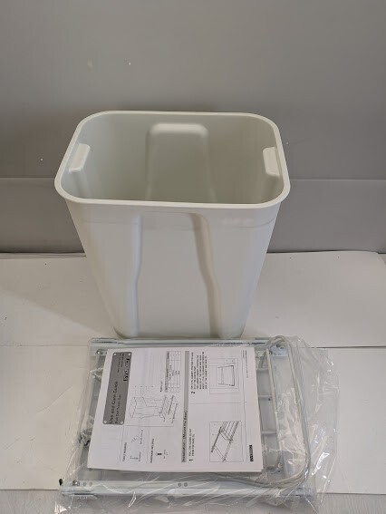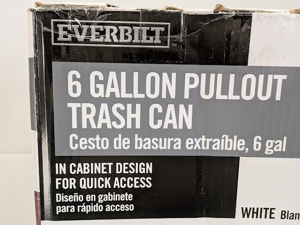 The Everbilt 6 Gallon White Pullout Trash Can offers a convenient solution to concealing your waste in both kitchens and bathrooms. Slides out for easy access. Sturdy white plastic trash bin is removable for ease of cleaning. Made of sturdy plastic, this bin has a 6-gallon capacity for recycled items or trash. Bin assembly is designed to fit standard cabinet opening of 12 in.