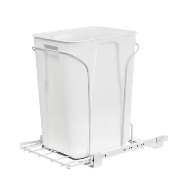 Everbilt Pull-Out Trash Can 6 Gallon Under Counter Kitchen Cabinet in White