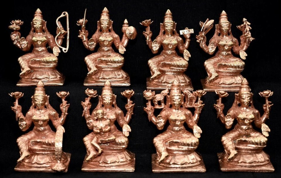 Goddess Ashta Lakshmi idols - 8 Forms of Devi Laxmi in Pure Solid Copper