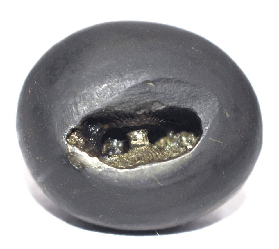 Black Color smooth Body , Half Moon Shape Opening with two clear chakra marks , mark of golden color impression on chakra .
