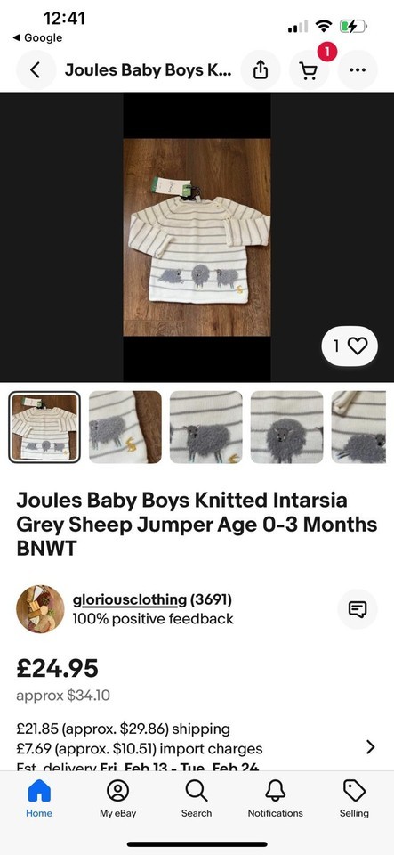 Joules Baby Knitted Intarsia Grey Sheep and similar items