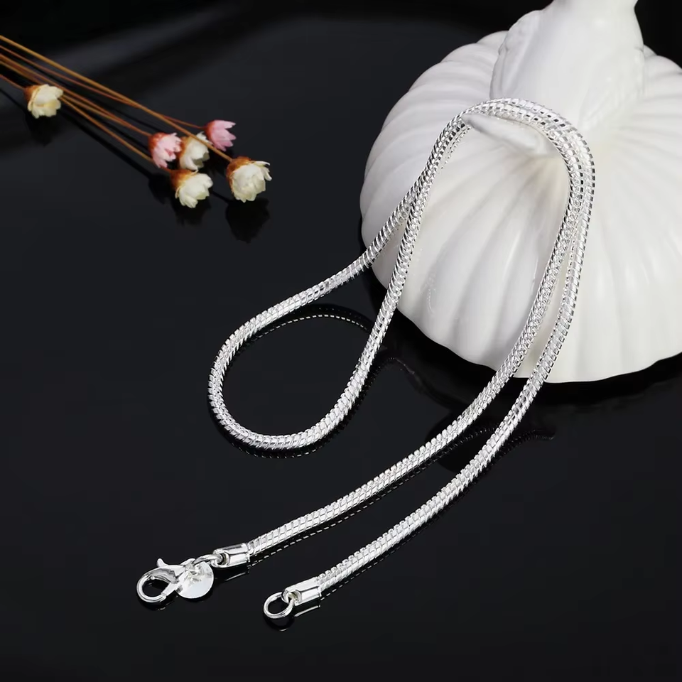 40-75cm 925 Sterling Silver 1MM/2MM/3MM solid Snake Chain Necklace Fashion Jewel